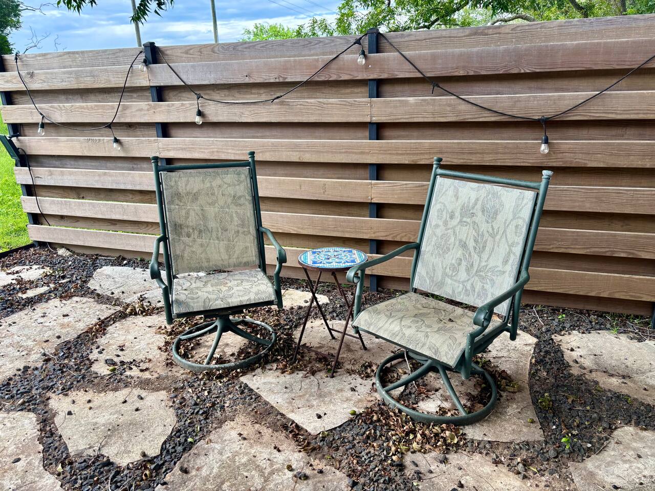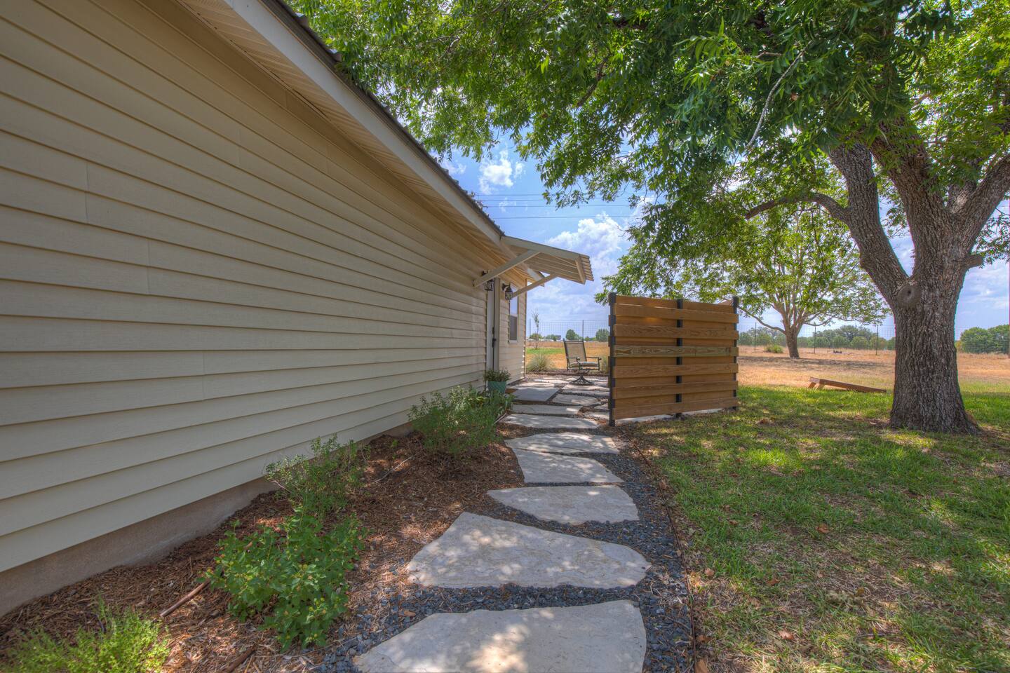 The driveway will guide you where to park for The Guesthouse. The two chairs outside of the guesthouse are for your use during your stay.