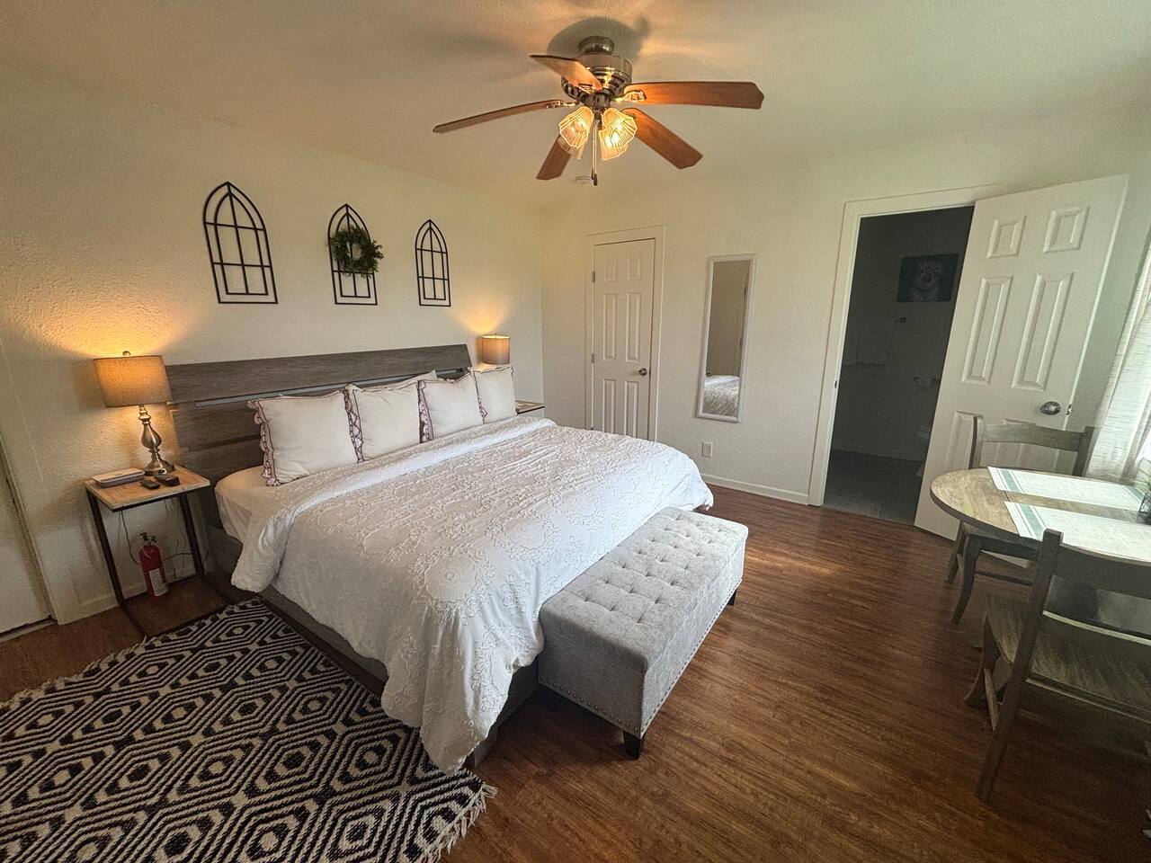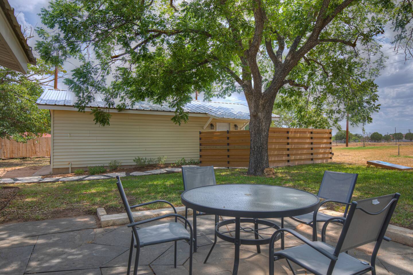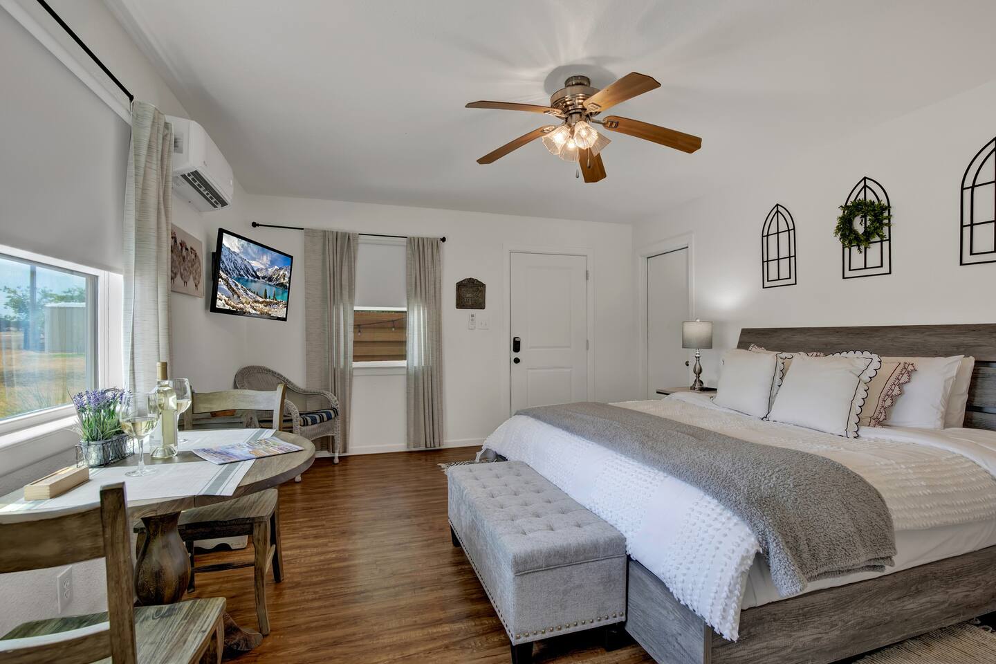 This guesthouse has its own private entrance but is located on the same 2.5-acre property as a larger main home, which may be rented separately or together for additional space. Planning a trip with a large family or a group of friends? Consider our unique "Combo" option, which includes both the guesthouse and the beautifully renovated main house—all on the same spacious property. The main house, fully remodeled in 2021, features: A modern kitchen with marble countertops Two dining areas Three traditional bedrooms A game room with a trundle daybed that can be closed off to serve as a private fourth bedroom The charming farmhouse-style interior reflects the peaceful, rural surroundings—complete with cows that occasionally visit the back fence and chickens from the neighboring property.
