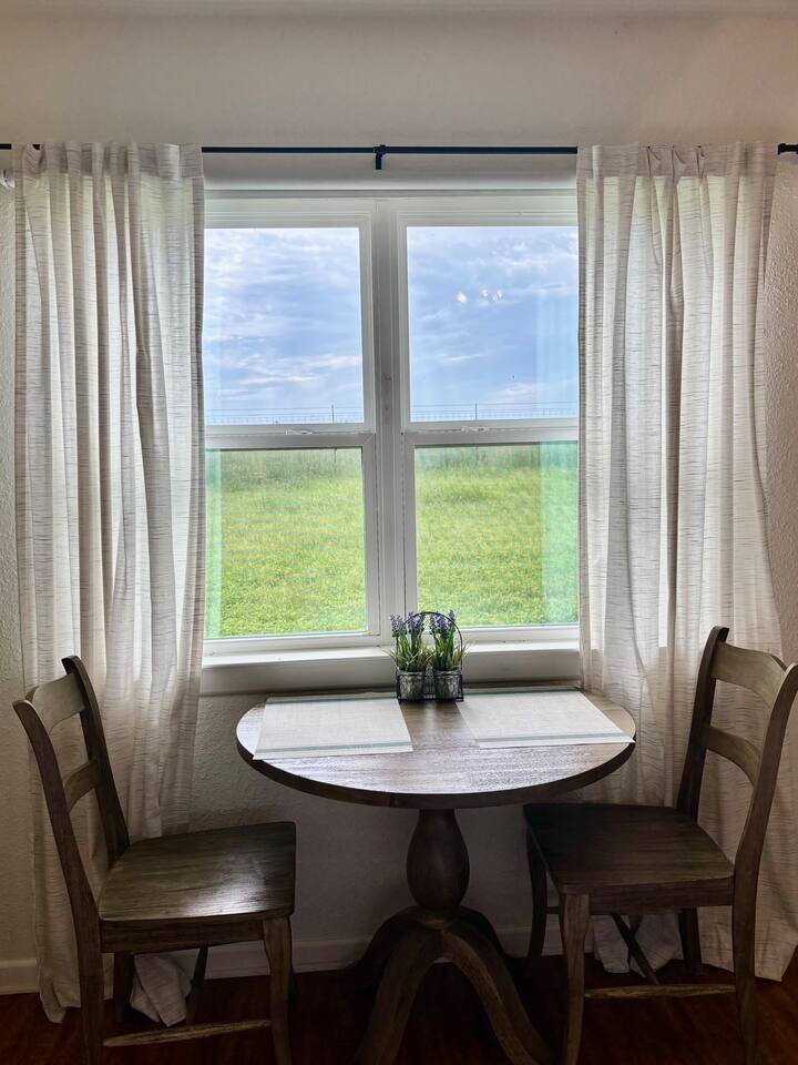 Welcome to your perfect Hill Country escape! Charming one-bedroom guesthouse in the heart of the Texas Wine Corridor, just 20 minutes from downtown Fredericksburg. Features a king-size bed, kitchenette (mini fridge, microwave, coffee maker), and a table for two overlooking open acreage. Perfect for a romantic weekend or relaxing getaway. Enjoy stunning sunsets and star-filled skies in this peaceful Hill Country retreat.